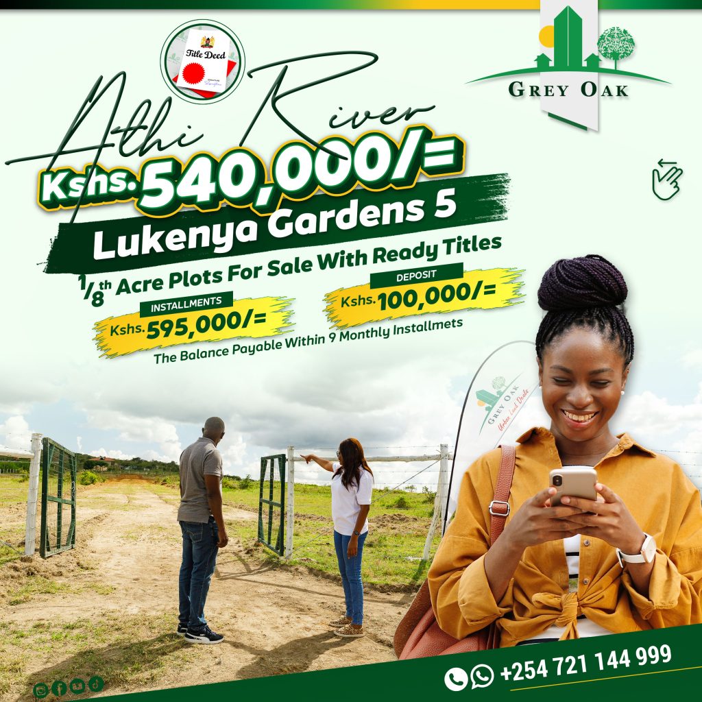 Our project in Athi River, Lukenya Gardens 5, is now available for sale. This property consists of 1/8th acre plots for sale located only 10km off Mombasa road and 5km off Mutungoni road. The property has the following amenities;